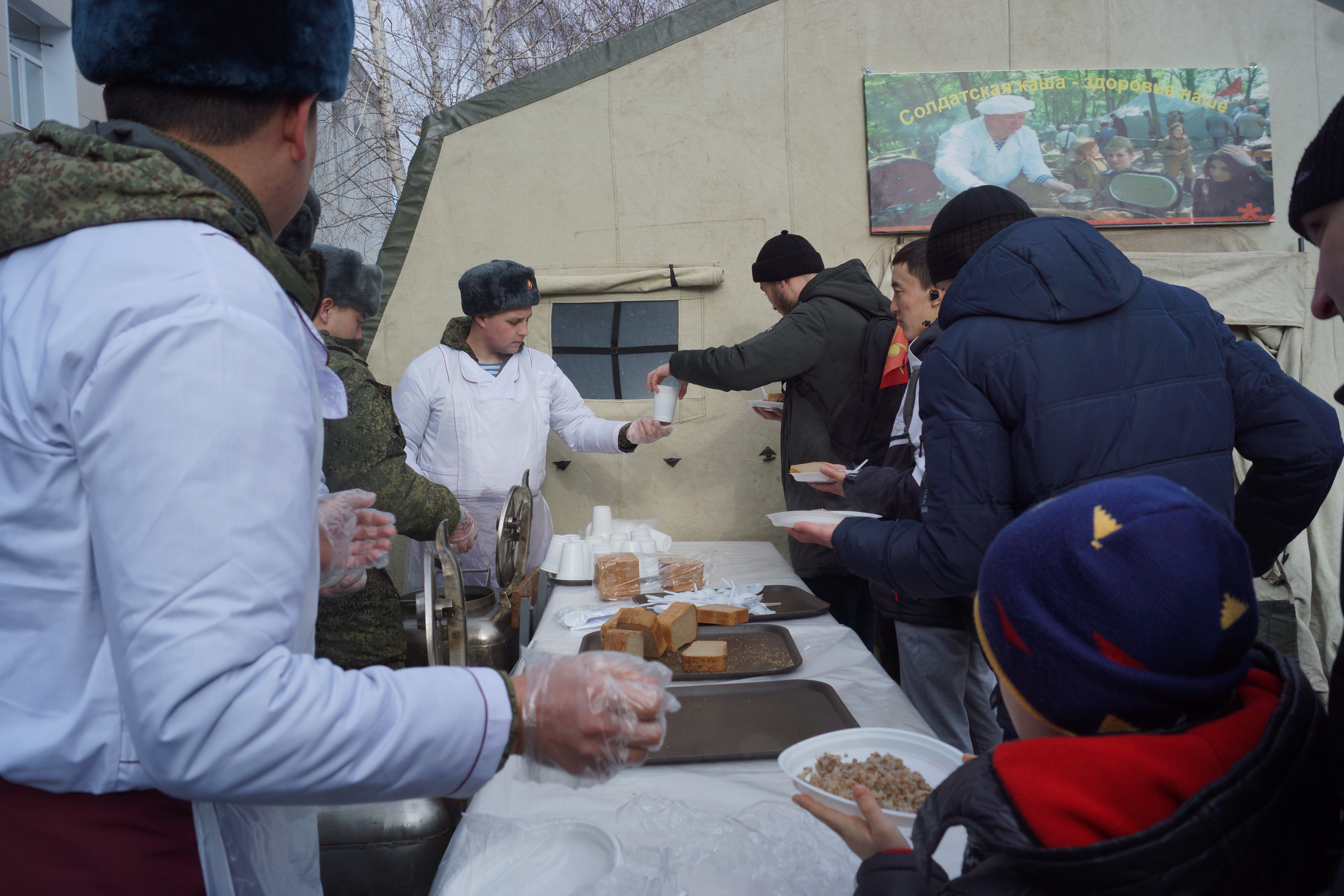 На территории Танкового училища посетители смогли ознакомиться с бытом курсантов, образцами стрелкового оружия и амуниции, проверить точность своей стрельбы и тире и, конечно же, отведать солдатской каши.